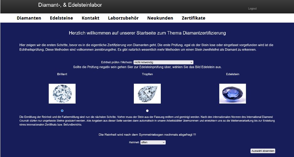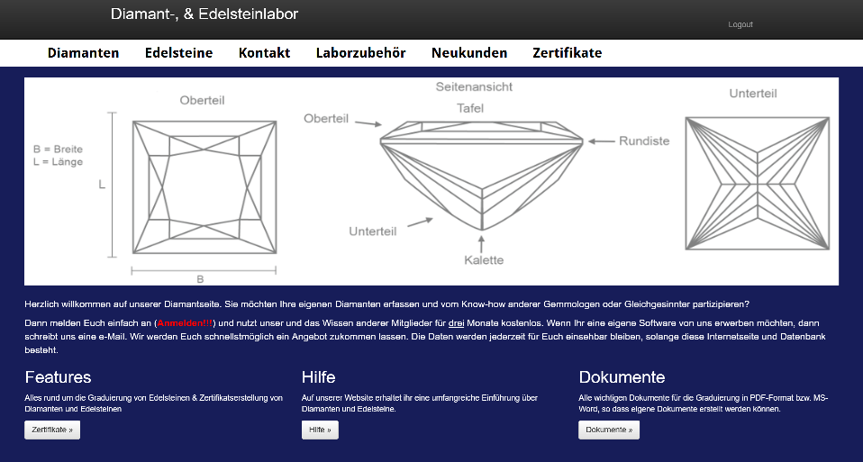 Unser Interesse gilt natürlich den geschliffenen Diamanten (drei Kategorien) welche uns zur Bestimmung vorgelegt werden.