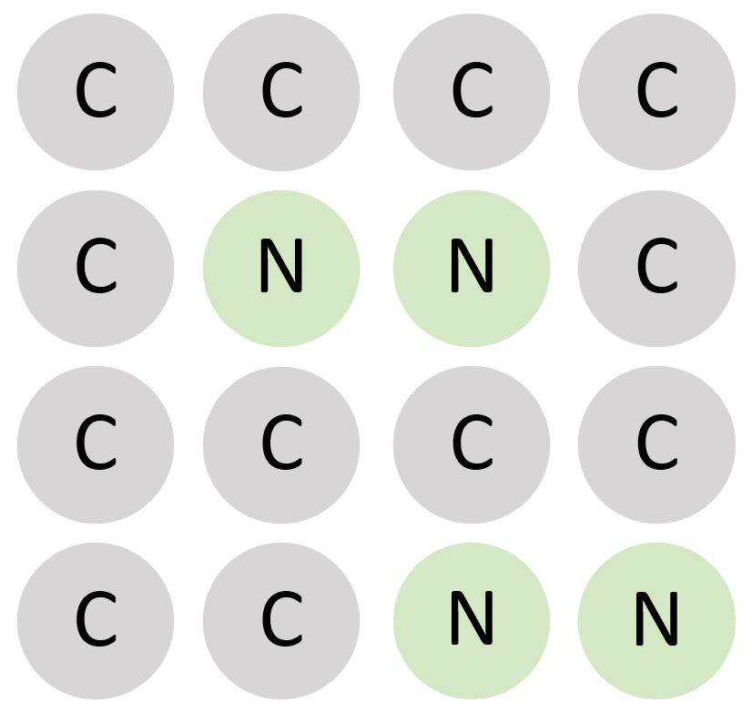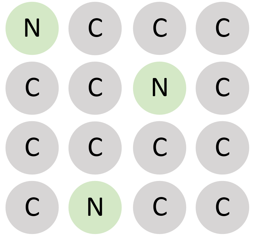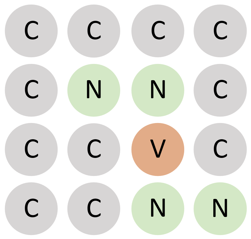 C = Kolenstoff Atom; N = Stickstoff Atom; B = Bor Atom; V = Gitterlücke