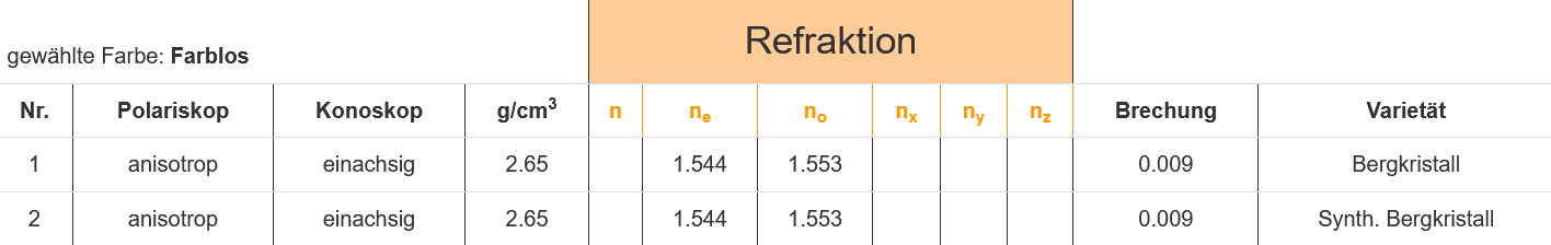 Doppelbrechung: -0.009 / optisch einachsig positiv
