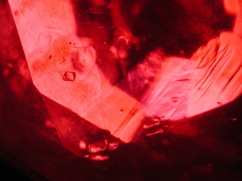 Farbwirbel, Wachstumslinien und Kristalle in nicht erhitztem Mogok-Rubin