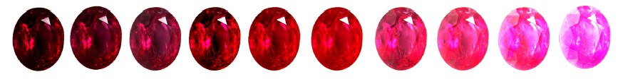 Als Einschlüsse können Zwillingslamellen, Negativkristalle, Heilungsrisse, Zirkone, Amphibole und Rutilentmischungen, meist in Form von Nadeln, Plättchen und Staub beobachtet werden. Video: Mosambik Rubine
