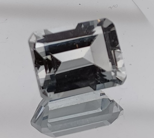 Formel: Gewicht an der Luft = 3.31 ct. durch (Gewicht/Luft = 3.31ct. minus Gewicht/Wasser = 2.38 ct.) = 3.57 g/cm3