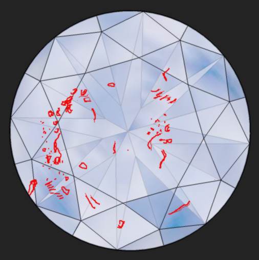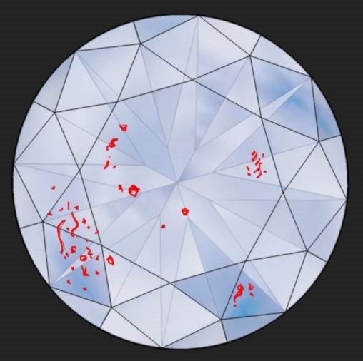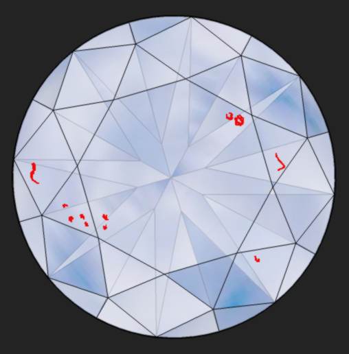 Lupenrein (Internally Flawless); VVS; = Very very small inclusions, VS; = Very small inclusions, SI; = Small inclusions,